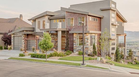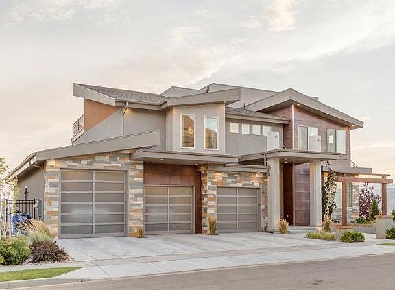 Want a home that will take your breath away? This multiple award winning 2012 Parade of Homes Home by Ezra Lee is a breathtaking piece of Art! The million $ views in this home will inspire vision, creativity, and innovation all day long. This modern design home features 5 bedroom suites which include their own private bathroom with 2 additional guest 1/2 bathrooms! The stunning main floor office is a perfect work space, or get away to the main floor library that warmly invites you to endlessly read your favorite book. With entertainment space galore, hosting family and friends is easy and features a 'conversation table' (included) that lowers or raises for guests to gather around for endless fun. This one of a kind kitchen includes an induction cook top for maximum efficiency and safety and plenty of gorgeous cupboard space. The home has an extra deep bay three car garage. The details of this home cannot be overlooked with pallet board throughout, custom designed barn doors and cabinets, sky lights and massive windows to capture the beauty of nature and loads of natural light! Additional features include a yoga/exercise room with full length mirrors, a large bonus room, a putting green just off the main floor, a 4th level green deck/patio that is great for watching fireworks and early morning yoga or star gazing. The exterior house lighting is on a solar digital timer. The built-in- gas fire pit on the back patio is perfect for entertaining!