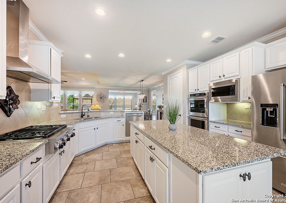 Stainless-steel appliancesPlentiful natural lightGranite countersTall ceilingsDouble ovensGas rangeOpen layout