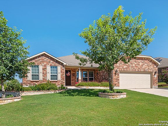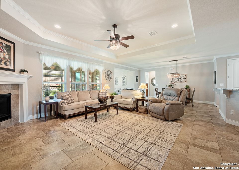 PRICE DROP!!! One of the most beautifully designed and immaculately maintained properties sure to be found in the Del Webb community of Hill Country Retreat, 4203 Paddling Pass is an entertainer's dream! The beautiful open layout features a recently renovated (!) gourmet kitchen with granite counters and stainless-steel appliances, including a gas range and double ovens, opening up to a living/dining combined space with tall ceilings and plentiful natural light. Rarely found in this floor plan, a sunroom off to the side extends the living area beautifully and provides a cozy room full of windows for reading, crafting, or relaxing. Off the sunroom you'll find a large screened in porch, open on two sides, that takes advantage of the glorious breeze provided in the perfect location of the home, sitting on the corner lot on a hill. The spacious living room focuses on a cozy fireplace tucked in the corner to warm the heart in cold winter months. A third living area/office is found at the front of the house with double glass doors (great for a TV room!). The primary suite is spacious and bright, with a beautifully expansive primary bath featuring a large walk-in/roll-in shower. The primary closet is roomy and well designed with plenty of hanging space in addition to extra storage. With a second en-suite bedroom complete with full bath and walk in closet, this pristine, no carpet home combines resort-style living with unmatched comfort. Close to shopping, dining, and parks. The Del Webb community is a Senior Community with activities and amenities to keep life fun and full.