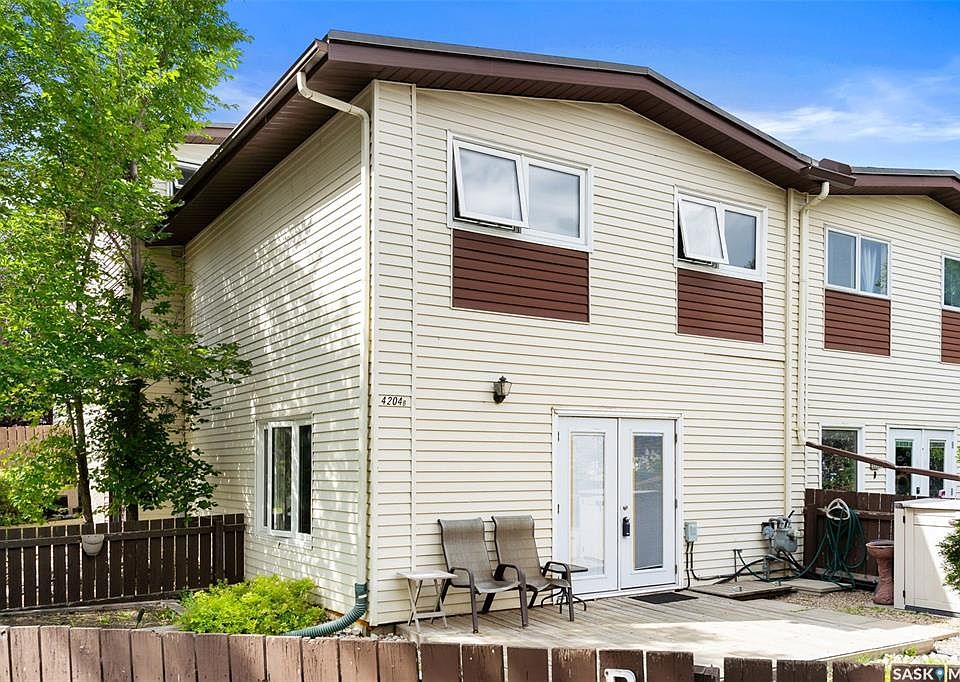 Welcome to B-4204 Castle Rd in Whitmore Park! 2 bedroom, 2 bath, 920 sq ft townhouse condo is a must see! Walking distance to U of R and right by the park. This end unit with a lovely south-east facing backyard, patio, and garden area. The unit has many updates including kitchen, flooring, windows and a recently developed basement with three-piece bath. An open concept living room comes with extra window and boost a lot of natural light and dining room with entry to yard is bright and spacious in design! Upstairs, two large bedrooms with large closets, and a full bath with large vanity is a great feature! Basement was developed with functional L shaped rec room, generous sized 3 pc bath, utility and storage areas! One parking spot & all appliances included.
