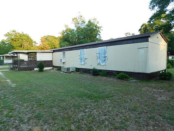 Nice Single-Wide Mobile Home with a Family Room added on. Seller is replacing HVAC unit and replacing some windows on the back side. Metal Roof installed after Ivan. This property has alot to offer. There's a 3-Car Carport ~ a Covered Boat Storage ~ 12x8 Workshop ~ 10x8 Vinyl Storage Building ~ 10x8 Greenhouse PLUS a 16x16 Covered Deck on the back. Property is fenced with chainlink and partial privacy fence. Easy access to I-10 or Hwy 90. Check it out today! (Cash Only - unless a lender can be located that will finance a single wide built in 1984).