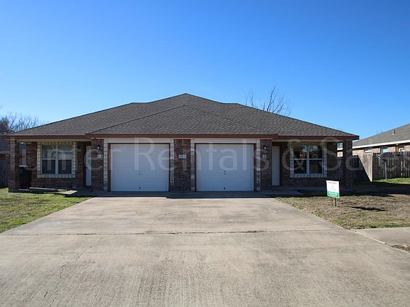 2 WEEKS FREE WITH A 1YR LEASE Located in south Killeen, this three-bedroom duplex features a privacy fenced yard, covered front porch, garage, spacious living room, open kitchen with plenty of cabinet and counter space, appliances, pantry, master bathroom with double sink vanity, full bathroom servicing minor bedrooms, window treatments throughout, and many other amenities. PRICE AND AVAILABILITY ARE SUBJECT TO CHANGE WITHOUT NOTICE