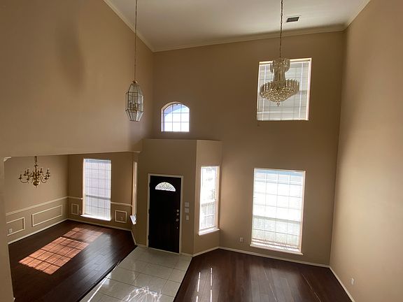 Charming Carrolton home in lovely neighborhood. Open floor plan with plenty of natural light and wood laminate flooring throughout. The ground floor features a double story formal, adjacent dining area and a cozy family room with a gas fireplace. The kitchen features an island area and adjacent breakfast nook. Enjoy the fenced in backyard from your patio or maybe use it to run around! The primary suite is spacious and has an adjacent primary bathroom suite with 2 walk-in closets - caring is not sharing! Separate shower, tub and separate sinks! Going upstairs into the open game-flex room area. The full bathroom features dual sinks and separate shower and bath area. The three secondary bedrooms offer plenty of space with spacious closets. All this and the convenience to highways, shopping and entertainment - this location is great!