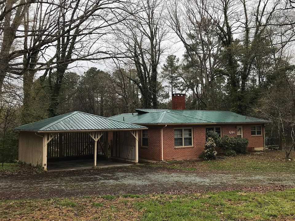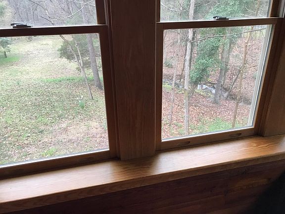 Beautiful setting with views over looking a lush wooded landscape and creek. Very unique home with hardwoods, real wood paneling and a full basement with kitchen.