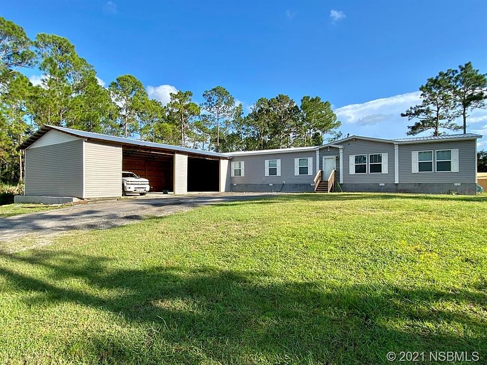 Don't miss out on this opportunity to live in the country! This beautiful, newer (built in 2020) 4 bedroom, 2 bath modular home by Southern Energy is move-in ready! Features include large attached garage (28x76 per owner) and inground pool - all situated on 2.9 acres with all the privacy you could ask for! A chef's delight kitchen with plenty of storage and counter space with stainless steel appliances, carpet and linoleum flooring throughout. Fenced lot with gate opener. Located in rural Samsula in New Smyrna Beach, but only minutes to beaches, restaurants, and shopping in New Smyrna Beach, Port Orange and Daytona Beach. Ideal for boaters - only seconds to the Lake Ashby boat ramp! A short drive to and from I-4 and I-95 for those who commute for work. Buyer to verify all measurements.