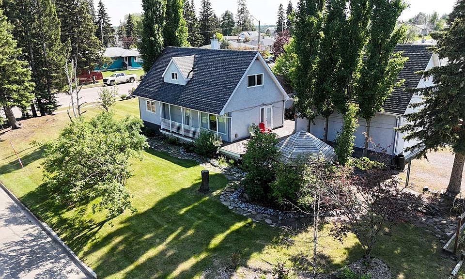 Step into timeless charm and modern functionality with this lovingly maintained character home, ideally located in the sought-after East End of Edson. Filled with natural light, the main floor features a spacious primary bedroom with two bright windows, and original coved ceilings that bring warmth and elegance to the dining and living rooms. Upstairs, two generously sized bedrooms share a convenient 2-piece bath — perfect for family or guests. The fully developed basement is ideal for cozy evenings in the large family room, complete with a wood-burning stove. There’s also ample space for games, a home gym, or hobbies, along with a large bedroom, 3-piece bath, laundry area, and excellent storage. Over the years, the home has seen thoughtful upgrades, including new windows, while maintaining its original charm and character. Outside, the beautifully landscaped yard offers privacy with mature trees and partial fencing. Enjoy the serene setting from the welcoming front veranda or the multi-level deck in the backyard — ideal for relaxing or entertaining. A standout feature is the impressive two-storey garage — a true “man den” or hobbyist’s dream — fully wired with 220 power, plumbed for in-floor heat, includes a forced air furnace, water, automatic garage door opener, and a full kitchen in the upper loft. Whether you're entertaining, tackling a project, or watching the big game, this space is ready for it all. A unique blend of classic character, comfort, and modern function — this one-of-a-kind property is a rare find!