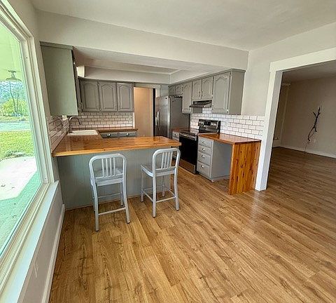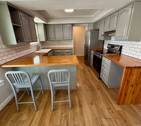Remodeled 3 bed 2 bath home in the heart of Springdale! Hardwood floors throughout. Eat in kitchen with SS appliances. Refrigerator provided. Large living room with wood burning fireplace overlooking large, wooded fenced backyard. Remodeled bathrooms and two car attached garage.