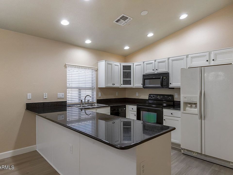 New Luxury Plank flooring throughout. Fantastic great-room plan with perfect wall for huge flat-screen TV. Fabulous Kitchen - abundant Cabinets plus black-Granite Counters, Breakfast-bar, Microwave, Fridge & Pantry. The perfect Office with Double-Doors right at front entry. Newly refinished cabinets Kitchen & Baths. Large Very nice & sizable Master Bedroom & Bath with double-sinks, separate shower and soaker-tub, Walk-in closet. Secondary bedrooms are good size. Washer & Dryer included. Ceiling fans throughout. Lovely Low-maintenance backyard with Covered Patio, Gazebo & Fire-pit. South-backing lot. Walking distance to Golf. New exterior paint 2019. A truly gorgeous, spotless, Move-in Ready Home. You will love living & entertaining here. Come see!