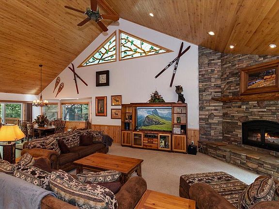 This Residence Was Featured In The 2010 Soroptimists Xeriscape Tour And Is Ideally Located Between Snow Summit And Bear Mountain (Approximately 0.5 Miles From Snow Summit And 2 Miles From Bear Mountain). The Home Features 4 Bedrooms And 5 Bathrooms. The Main Level Offers Easy, Level Living With Handicap Access, Including 4 Bedrooms And 4 Bathrooms Downstairs. The Generous Main Bedroom Suite Includes A Fireplace, A Large Walk-In Closet, Double Sinks, Jetted Tub, Separate Shower And Access To The Back Deck. The Great Room Is Characterized By Soaring Alderwood Ceilings And Features A Corner Stone Fireplace. The Large Kitchen Is Designed For Multiple Cooks With Two Separate Sinks And Counter Space For All. Adjacent To A Generous Dining Area With Back Deck Access. A Huge Loft (Approximately 660 Square Feet) Provides Additional Space For Entertainment Or Sleeping. Attached 3 Car Garage On A Large 15,190 Square Foot Lot. The Exterior, Decking, And Trim Were Professionally Painted And Treated In November 2025. Floor Plans Included