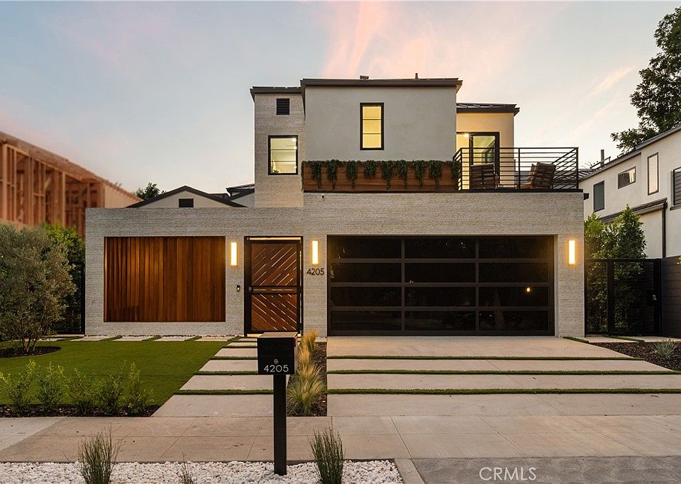 A bold statement in modern luxury living, this brand-new construction home is situated on a quiet tree-lined street in prime Studio City. Showcasing thoughtful design throughout, the bright and airy open-concept floor plan is defined by lofty ceilings and a spacious, flowing layout. At the heart of the home lies every culinary enthusiast’s dream, a designer kitchen equipped with a La Cornue range as its centerpiece, high-end Thermador appliances, a stunning waterfall island and walk-in pantry. The adjacent living room and formal dining area are highlighted by a dramatic fireplace framed by custom built-ins and two oversized sliding glass doors that seamlessly extend your living space outside – ideal for entertaining. Step out to your tranquil backyard retreat and enjoy the best of outdoor living with a sparkling pool/spa, built-in BBQ and plenty of patio space for sun-soaked lounging or al-fresco dining. Upstairs, there are three generously sized ensuite bedrooms and a dedicated laundry room. The primary suite features a private balcony, custom walk-in closet and spa-inspired bathroom, complete with a soaking tub, steam shower and double vanity. Boasting its own private entrance, the attached guest suite offers a living room with a kitchenette and ensuite bedroom with a walk-in closet – perfect for a home office/gym/studio, guests or multigenerational living. Additional highlights include a wine cellar, smart home features (Ring security system, Nest thermostat, Lutron lights), a gated front courtyard and two-car garage. This property is ideally located within the top-rated Carpenter School District and just moments away from Ventura Boulevard’s vibrant shopping and dining scene, the Studio City Farmers Market and so much more.