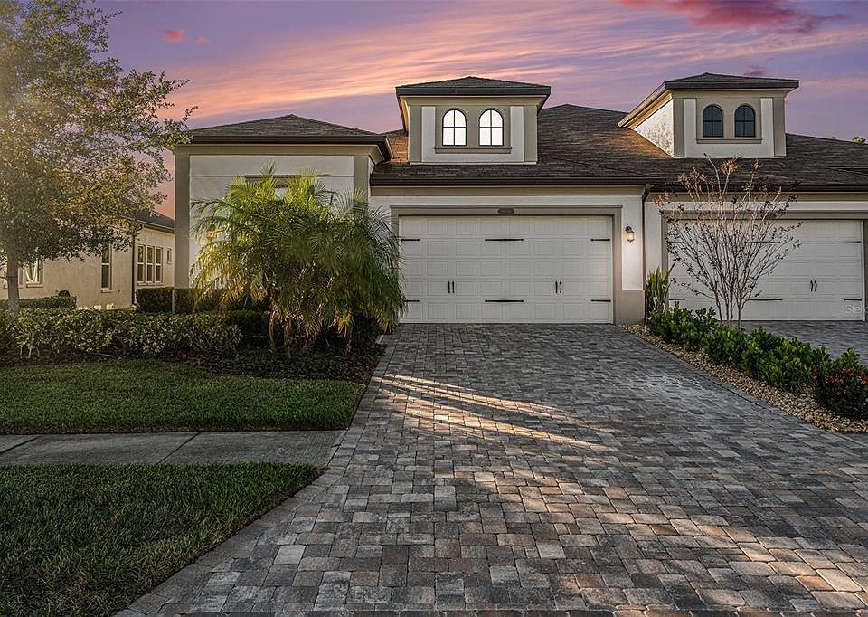 One or more photo(s) has been virtually staged. Luxury living meets low-maintenance in this stunning 3BR + bonus room, 2.5BA home in the gated resort-style community of Santeri at Estancia. Enjoy soaring ceilings, quartz countertops, gas range, and a private screened lanai all on a conservation lot. Transom lights adorn the Family Room and Kitchen Open Concept Layout yielding abundant natural lighting. Chef's dream with Gas appliances, quartz counters, 42 cabinets for ample storage and an oversized walk-in Pantry. Tray ceilings and a luxurious Spa like bath complete the spacious Primary Suite. Residents in the gated community of Santeri enjoy low maintenance living with exterior paint, roofing and all landscaping included! Additionally, enjoy the private Santeri Resident only community Pool and Spa. The main amenity center includes a zero, entry heated pool with lap lanes & Tower slide, Tennis, Pickleball & Basketball Courts, fitness center and Clubroom with weekly events, 11 miles of nature trails and walking paths, dog parks & more. Minutes to I-75, Wiregrass Mall, top-rated schools & healthcare. Just 30 mins to Downtown Tampa and close to Florida's white sand beaches. Schedule your private tour today.