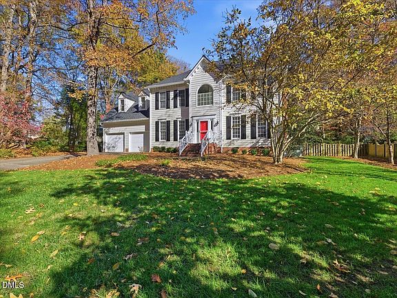 This charming Jay Kelly-built traditional home is situated on a quiet street in the desirable Garrett Farms community. Spanning 3,204 sq ft, it features four spacious bedrooms and 2.5 bathrooms, offering a blend of timeless charm and modern comforts. The main level welcomes you with a gracious foyer, 9-foot ceilings, and hardwood floors, leading to formal living and dining areas. The oversized family room boasts a masonry gas-log fireplace and double doors that open to a versatile living/study space. The bright kitchen includes a separate breakfast room and easy access to the backyard. Upstairs, you'll find four well-sized bedrooms, including a primary suite, along with a large bonus room accessible from a convenient back staircase—ideal for a playroom, media, or home office. A walk-up floored attic provides excellent storage options and potential for future expansion. Enjoy outdoor entertaining on the large deck and patio overlooking a fenced, landscaped backyard that offers privacy and space to relax. Additional features include a two-car garage, main-level laundry, and city utilities. Located just minutes from Duke University, Southpoint Mall, 15-501, and I-40, this home combines a peaceful neighborhood atmosphere with daily convenience—an excellent opportunity in one of Durham's established communities.