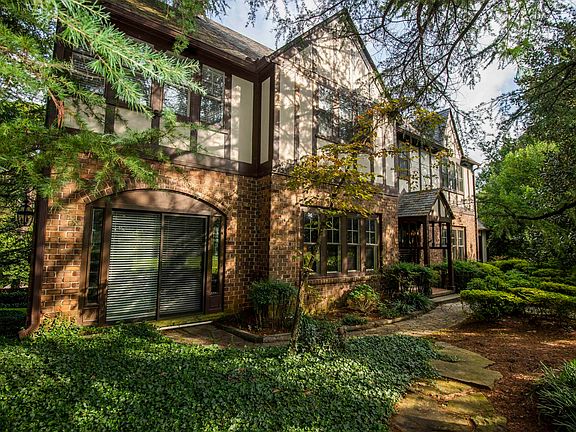 Tucked back from the street on a private wooded lot, this extraordinary English-Tudor offers magnificent original features paired with modern convenience to put forth a distinctly unique character. Quaint yet grand, find four bedrooms with two full baths,3 car garage, two half baths and 4,535 square feet of exquisite living space.Immediately upon entering the main foyer, it is obvious many original, intricate details make this home truly stand apart from the rest. Lovely hardwoods are found throughout, including the hard-carved barley spindle stairwell with hand hewn risers. Stately elegance abounds. Whether your aim is to host a lavish party or just a small gathering you will find the perfect space to accommodate your needs. A banquet size