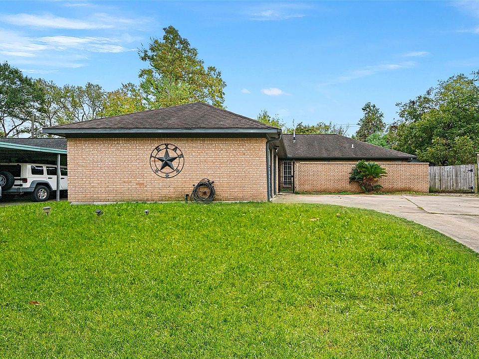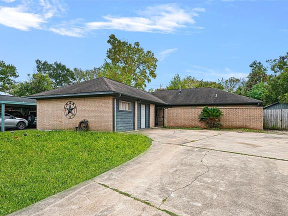 4 bedroom, 3 full baths in the heart of Baytown. The neighborhood is well established with pride of ownership throughout. This floor plan is great for Multi Generational living since it has two primary bedrooms with ensuite bathrooms. The home is bright and full of natural light with lots of windows. The main primary bedroom features double doors to backyard, cool brick accent wall and stone shower. The kitchen is huge and has a connected dining room area; ideal for holiday gatherings and parties. The indoor laundry room is a large space and can accommodate your washer/dryer and add'l storage. The garage has been converted to a large bedroom with en-suite with separate entrance; this would work great if you're looking for more bedroom space or if you're looking at possible rental income. The backyard space has tons of potential. Come check this one out!