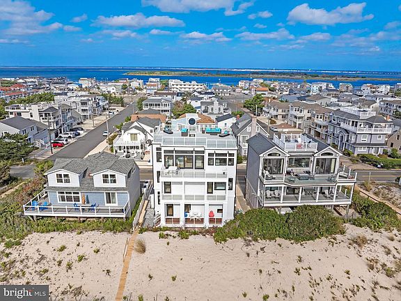 Spectacular Oceanfront Home. A custom-built masterpiece located on the ocean in Brant Beach, designed by CWB Architecture and built by Building LBI. Includes all furniture, including Artwork. This 2,960 sq. ft home is unique in all aspects. It starts with an oversized front entry door leading into the Foyer. Nu-Cedar Siding throughout the exterior of the home. The first floor offers a Bedroom and Full Bathroom, a Family Room which includes a Subzero beverage refrigerator and a full service bar. A door from the living room leads to a covered deck. On the second floor you will find the Master Bedroom with 9 ft. ceilings, a shower with frameless glass doors and a spacious walk-in closet. There are 3 additional bedrooms, the Junior Suite/Bedroom with a full bath and 2 additional Bedrooms with an adjacent full bath which includes a Soaker Tub all with frameless glass doors and quartz countertops. The laundry room offers 2 stackable Whirlpool Washers and 2 stackable Whirlpool Dryers. The third floor has an amazing open floor plan with 10 ft ceilings dedicated for entertainment. The living room has a meticulous detailed gas fireplace which opens to a Chef’s Kitchen with an island, Quartz Calcutta Countertops, oversized Farm Sink with black Kohler faucet and disposal, 48" Wolf Range, 48" Subzero Refrigerator and Subzero under the counter Wine Cooler. Elaborate windows and doors, moldings with ship lap accents and wide plank engineered flooring throughout the home. The sliding door from the living room boasts an oversized deck with full ocean views. There is a bonus room that can be either a guest room, office or an additional family room. You can access the rooftop deck from this level, which has amazing Ocean and Bay views. The garage offers a car lift and the 4 stop Elevator with self-closing gate begins at this level, and 2 Outdoor Showers which matches the Nu-Cedar exterior of the home. Anderson 400 series double hung windows with grill accents and screens, with black on black, and matching transoms. Motorized Levolor Blinds in all bedrooms. The home is prewired for T.V., Cable, Internet and Speakers. 3 zone variable speed high efficiency Heating and Cooling and dual recirculating Instant Hot Water Heaters and includes a Central Alarm system. Water filtration system in whole house. The increased 1 ½” water supply service to the building will assure ample pressure to satisfy all the demands of the family. Watch your sunrise and sunsets from this spectacular home! Good fit and finish and every element of the home is accurately aligned, precisely spaced, and appropriately fastened. Best of all this prime luxury home offers on-site parking and a garage and garage lift. Just steps to the beach, is walking distance to shops and restaurants. Start making memories today in the most exquisite and sought after location of Brant Beach which completes all the wants of any family's wish list and then some. All this and a private dune walk over for your beach access Call today to see this exquisite property. Seller holds a New Jersey Real Estate License.