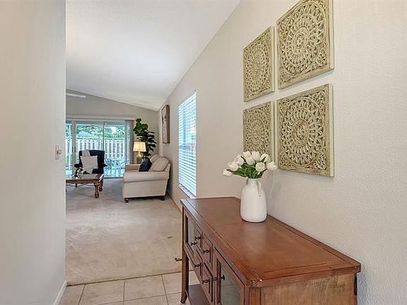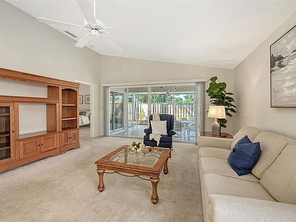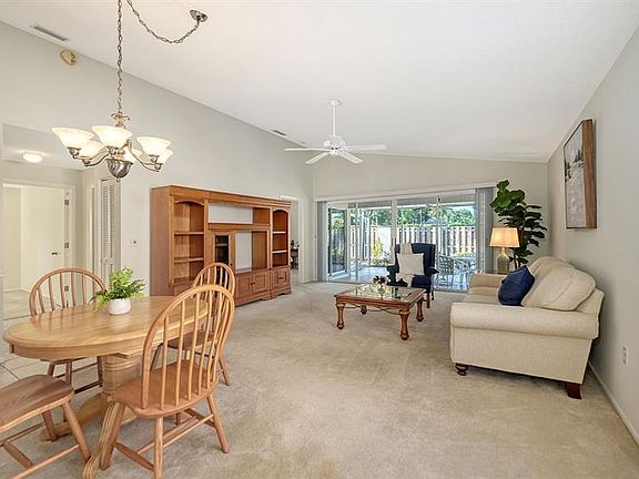 Nestled in the desirable Treetops neighborhood, centrally located to all the best Bradenton and Sarasota have to offer, this charming 3-bedroom, 2-bathroom home offers the perfect blend of comfort, functionality, and convenience. Step into the expansive great room with vaulted ceilings and a wall of glass sliders, flooding the space with natural light and providing seamless access to the large, covered, screened outdoor patio. The adjoining dining area makes entertaining effortless and enjoyable. The kitchen is both stylish and practical, featuring updated cabinetry, stunning corian countertops, and matching, like new stainless steel appliances. A convenient pass-through connects the kitchen to the dining and family room, making it easy to stay engaged with guests or family while preparing meals. An eat-in kitchen nook offers an alternative cozy spot for casual dining. The spacious primary bedroom is designed for relaxation, boasting vaulted ceilings, abundant natural light from another glass slider, also with direct access to the covered patio. The suite includes a large walk-in closet and a private en-suite. Two additional bedrooms provide options to fit one’s own lifestyle. One features a standard closet, while the other offers a double French door entry and walk-in closet, ideal for use as a bedroom, office, craft room, den, or workout space to name a few. Enjoy the convenience of an interior laundry closet with a full-size washer and dryer. Outdoors, the rear yard and patio are enclosed with privacy fencing. The entire interior was recently painted, including all trim and ceilings. This home’s location is truly unbeatable. Less than 5 miles from I-75 and University Town Center (UTC), offering a wealth of shops and restaurants. Sarasota-Bradenton International Airport is also just 5 miles, while Lido Beach is under 10 miles. The Treetops neighborhood features an HOA that includes a community pool and tennis court, basicinternet service, and No CDD fees. Don’t miss this opportunity to make this beautifully maintained, move-in ready home yours.