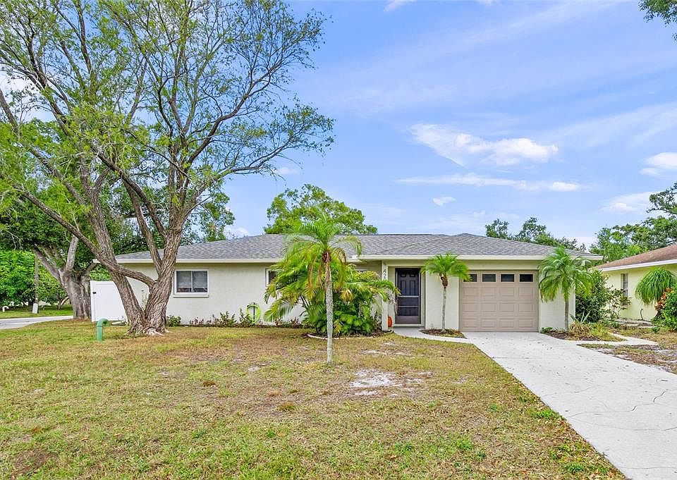 Welcome to paradise in Sarasota!! This well appointed and spacious 1,562 square foot corner lot home, is located in the coveted neighborhood of Sarasota Springs. This central location of Sarasota is approximately 8.5 miles to either of the world renowned crystal quartz sand beaches of Siesta Key or Lido Key, and there are no HOA or CDD fees associated with this home. This spacious 2-bedroom 2-bathroom home boasts an updated gourmet chef’s kitchen with stunning natural stone quartzite counter tops and new LG appliances with a ThinQ feature for app control. You will have peace of mind with a new hot water heater installed in 2025, a Honeywell app controlled smart thermostat, newer roof installed in 2022, new seamless gutters, updated impact resistant windows, a new paver patio seating area in the backyard, an app controlled front door lock as well as app controlled front and backyard ring cameras with flood lights in the backyard. The primary suite creates the perfect ambiance to relax with a walk-in closet and an en-suite bathroom. The second bedroom is also spacious with the convenience of a walk-in closet. Enjoy a generously sized indoor laundry room including a utility sink and ample storage cabinets. The home has an abundance of natural light, and is complimented with a tranquil enclosed porch featuring windows and a door to a new paver outdoor patio with a fully fenced amply sized yard. Complementing this home is having the convenience of a one car garage to store your garden tools, beach chairs, and unload your groceries sheltered from the rain and sun. You will enjoy living in this central location close to amazing golf courses, great restaurants, shopping centers, schools, medical facilities, airports and much more. Do not wait and schedule a showing today!