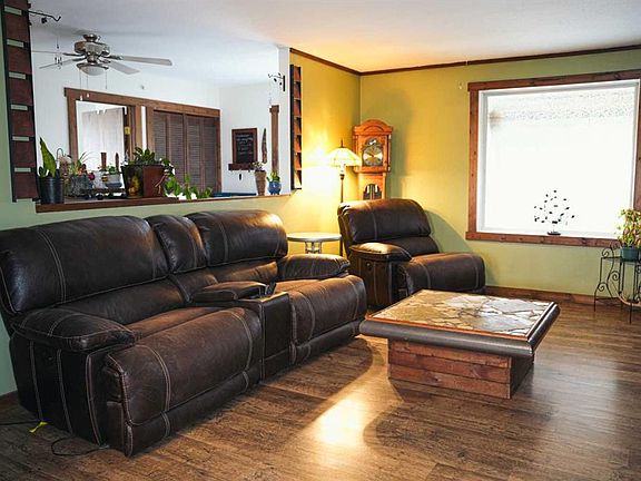 Discover the perfect blend of country tranquility and in-town convenience with this beautiful 2+3 bedroom, 3-bath home situated on over 5 acres within the Town of Hardisty limits. Enjoy stunning views of the river valley right from your own backyard. The main living area features a gorgeous wood-burning fireplace, ideal for cozy evenings, the main level also opens onto two large decks — perfect for entertaining or relaxing outdoors. The main level offers both a walk-in appliance pantry and a regular pantry, providing exceptional storage space. The basement features the primary bedroom which includes a luxurious jacuzzi tub and a large walk-in closet.Other features of the basement are a beautifully tiled walk-in shower, a spacious family room, and a cold room for storage or preserves. Outdoors, the property is a gardener’s dream, filled with fruit trees — including saskatoons, chokecherries, raspberries (wild and domestic), apples, plums, and cherries. There are numerous raised garden boxes and ample space to build a large greenhouse or shop. A beautiful detached studio offers endless potential — whether as a creative space, guest suite, or home business. This unique property combines the privacy of acreage living with the convenience of being right in town.