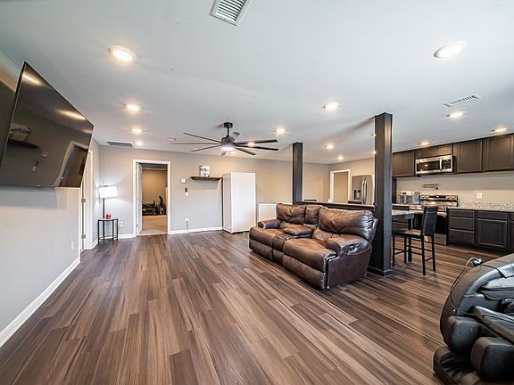 Welcome to this stunning, completely renovated home located in a prime location near shopping centers, Central High School, and easy access to JR Allen. This spacious residence features an open-concept layout that welcomes you with a wide entryway, seamlessly flowing into the living room and a beautiful eat-in kitchen with granite countertops and a breakfast bar. Surrounded by five spacious bedrooms, the master suite offers his-and-her closets and a luxurious, modern bathroom with double vanity--vessel sinks, a soaking tub, and a large tiled stand-in shower, all designed to be accessible-friendly. The two bedrooms on the right side provide easy backyard access and are separated by a versatile laundry space, in which one portion of that side can double as a cozy in-law suite with its own updated bathroom. An additional nicely updated bathroom with a tiled shower serves the other bedroom. The backyard features a shed for extra storage and a swing set, perfect for kids to enjoy. This home combines modern updates with ample space and convenience in an ideal location.