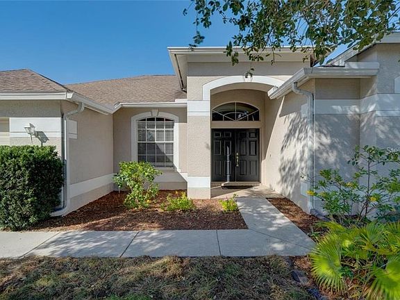 2005 Windward Homes St Croix with 4 bedrooms, 3 full bathrooms and a 2 car garage. This move in ready home features formal living & dining rooms, master suite with walk in closets, dual vanity with separate garden tub & shower, eat in kitchen with 42in cabinets, newer SS appliances overlooks the family room. Covered lanai on a fenced corner lot. New AC March 2019. New sod and carpet 2020. 2,286 living sqft, 3,067 Total sqft. Conveniently located in Gated Sterling Hill with 2 club houses, exercise facility, 2 pools, 2 playgrounds, basketball, tennis and more.