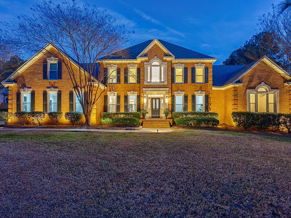 Stunning brick home in River Chase community with 485 sqft guest cottage! This impressive 7 bed, 6 1/2 bath home is sure to wow you as soon as you lay eyes on it, but the inside will make sure you want to stay. Upon entry, you will be greeted with a grand foyer showcasing the staircase to the second floor, with a sitting room off to your right. To your left is the formal dining room, with plenty of space to entertain all of your guest. Further back is the great room, which gathers around the gas fireplace and over looks the pool and screened porch. Connected to the great room is the kitchen, featuring a gas range and built-in microwave for added convenience. In addition to the main floor, you will also find the large owner's suite as well as a large, multi-purpose entertaining room. Out back you will find the large screened porch, overlooking the large pool and guest cottage. The cottage is home to a small outdoor kitchen for the pool, a studio style room with a full kitchen for guest, as well as a 2 car garage, leaving the home with 4 garage spaces total!