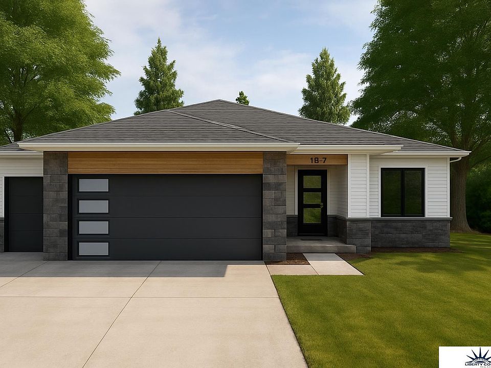 The Manhattan by Hallmark Homes Gallery series in Elkhorn's Iron Bluff. Hallmark's Gallery Series plans include 36" kitchen cabinets with crown molding, 16x10 deck and/or 12x10 patio, LVP in the main floor living room and blinds in every bedroom. This Manhattan features a Modern Elevation. Every Hallmark Home includes Quartz Countertops, GE Stainless Steel appliances, Moen plumbing fixtures, Luxury Vinyl Plank flooring, PureColor Carpet, 5-1/2" Base Trim, 2x6 Framed Exterior Walls, Stone on exterior and Sod w/ Sprinkler System! Tons of options to choose from! 1 Year New Home Warranty included. This home has not started construction, choose this plan or any of our plans and customize your selections! Photos are from similar model.