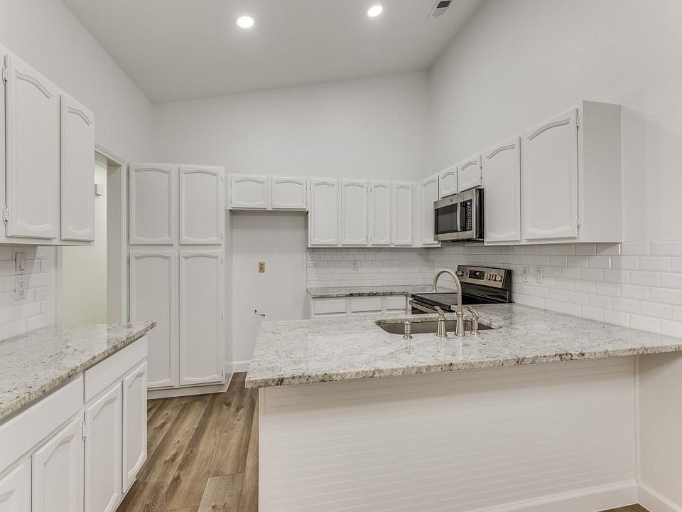 Welcome home to your beautifully updated Duplex in Flower Mound! Luxury Vinyl Wood Plank & Tile in the wet areas, Fresh Interior paint, kitchen & bath cabinets, quartz counters, sinks, faucets, ceiling fans, LED lighting, & blinds! Kitchen features Black-Stainless steel appliances with beautiful backsplash. Vaulted ceilings in the family room and primary bedroom! Nestled in the heart of Flower Mound Schools (walking distance) and close to parks & great trail system. Restaurants within walking distance. Schedule your showing today.