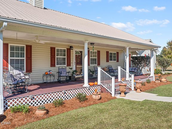 Welcome to your own private retreat on 9 beautifully landscaped acres—just minutes from Historic Downtown Marianna! This 3-bedroom, 2-bath home combines modern updates with serene country charm. Step inside to a spacious open living area filled with natural light, featuring a cozy wood-burning fireplace and a seamless flow to the formal dining area and breakfast nook. The kitchen is a chef's delight with granite countertops, a breakfast bar, and updated cabinetry (2016). The large master suite includes a walk-in closet and a walk-in shower, while guest bedrooms are generously sized for family or guests. Recent updates include new carpets (2023), vinyl plank flooring (2024), solar panels (2023) and encapsulated and insulated crawlspace which adds comfort and efficiency year-round. Enjoy the outdoors from the large front porch spanning the length of the home or the quiet relaxing back patio, and if that doesn't cut it try the entertainment area off the enclosed garage for the perfect family gathering or sit down by the serene pond perfect for fishing. So many serine spaces to enjoy the outdoors. The property is fully equipped for country living with 1-bay horse stall with tack room, a 3-bay carport that could be additional space for more animals. (built 2019) All outbuildings are wired with lights, and the property is fenced and cross-fenced with additional electric fencing, completely mowed, and beautifully landscaped. Water lines run throughout the property, and everything is protected with a termite bond and gutters. Nestled in a serene, park-like setting, this property offers peace and privacy while still being close to Marianna's charming historic downtown, known for its rich Florida history and natural treasures such as the Florida Caverns, Millpond, Spring Creek, and Chipola River — a true fisherman's and nature lover's paradise. Schedule an appointment today to experience this beautiful home with relaxed living at its finest.