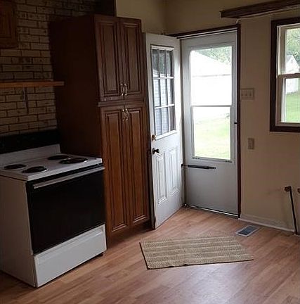 Nice starter home or rental. Needs a little TLC with one of the largest lots on the street. Over sized 1.5 car garage with work bench. Pull down steps for attic storage in house.