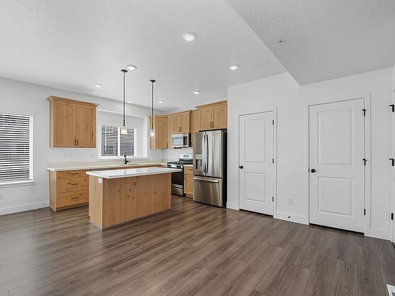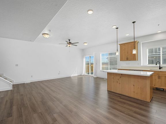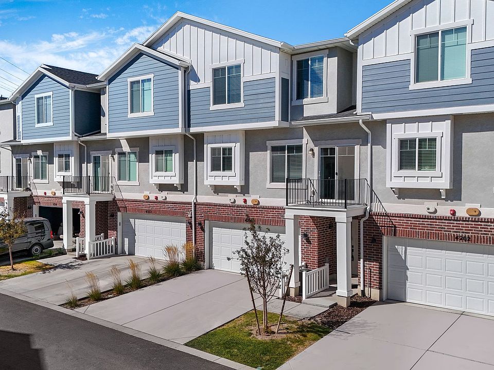 Experience modern comfort in this 3 bedroom, 2.5 bathroom townhome, ideally located in the heart of Riverton. Just minutes from Riverton Hospital, Riverton High School, shopping, dining, and everyday conveniences, it offers the ideal blend of comfort and accessibility. The first floor features a two car garage, coat hook/bench and welcoming entryway. Upstairs, the open concept second floor is designed for modern living and effortless entertaining, highlighted by soaring 9 foot ceilings, upgraded laminate flooring, and a stylish kitchen with quartz countertops. On the third floor you'll find three bedrooms including a serene primary suite, two full bathrooms, and a conveniently located laundry room. Large windows throughout flood the home with natural light, while the private deck is the perfect place to relax and take in the views. Located in a desirable new subdivision, this home offers both style and convenience, ready for you to move in and enjoy!