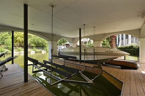 Nestled in an exclusive gated community, this incredible Lake Austin Waterfront offers seclusion and a private boat dock with two slips. Only minutes from downtown and the medical center, this home boasts elegant features throughout with soaring ceilings, walls of windows and a flowing floorplan. This spacious home also contains a gourmet kitchen, butler's pantry, conservatory, upstairs game room, secondary master bedroom & study. The downstairs master suite is complete with a fireplace, two showers, walk-in closets and two private dog rooms. Guest Quarters can be found upstairs with a sitting room and private bath. The backyard oasis provides an incredible getaway with a huge outdoor patio, amazing view & private water access.