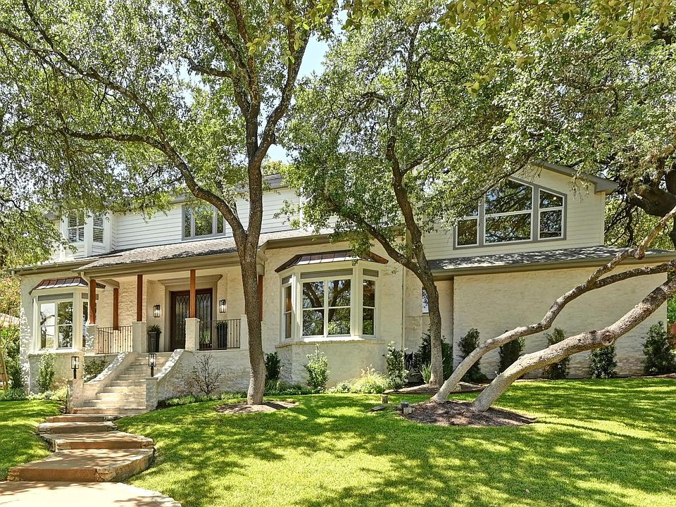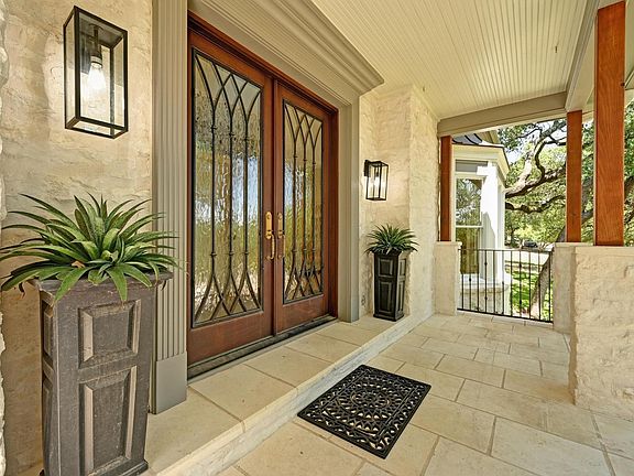 Built in 1982, this beautiful Traditional home has been thoughtfully updated. The slurred stone exterior radiates charm on the fully manicured .67 acre lot. Wood beams encase the front entrance porch and double glass doors. The entrance foyer opens to both the formal and informal living areas, providing easy flow through the downstairs. The formal dining room is adjacent to the formal living room. The newly remodeled kitchen has stainless appliances, a center island and plenty of counter space on the breakfast bar. The kitchen overlooks the covered back patio, pool and backyard. Enjoy an extra dining area off the kitchen. The informal living room has a wet bar with storage, overlooks the front yard, and is open to the kitchen and breakfast area. A delightful mud room adjoins the garage, providing 4 "cubbies", an extra refrigerator, ice maker, extra storage and exterior door to the pool. There is one secondary bedroom on the main level with a full bathroom. A primary suite was added over the garage several years ago with stunning windows overlooking a majestic treaty oak tree. The primary bathroom is a cozy retreat with double vanities, oversized shower and gorgeous walk in closet with built in cabinets. 3 additional bedrooms are located upstairs with one full bathroom. A large game room is also upstairs. The laundry room was added upstairs and is a dream come true! Tons on storage and plenty of counter space make this an ideal craft room as well. The backyard has a newly resurfaced and tiled pool and spa. The lot backs to a hillside, providing privacy and beautiful landscaping. West Rim HOA owns a park on Lake Austin within walking distance of the property. Homeowners enjoy a playscape, tennis court, basketball court, gazebo with grill, picnic area, day dock, kayak & paddle board storage and a 20 boat slip marina.