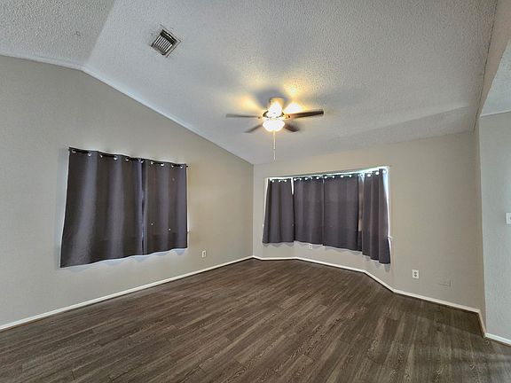 Updated home with great access to I-45 and downtown. Three bedrooms with engineered floors, 2 baths. Living room is open to dining and kitchen with sloped ceilings and contemporary colors. Sliding glass doors open off dining area to fully fenced backyard. Master bedroom has sloped ceilings and 2 closets. Double sinks in bathroom and oversize tub. Generous front yard and backyard as well.