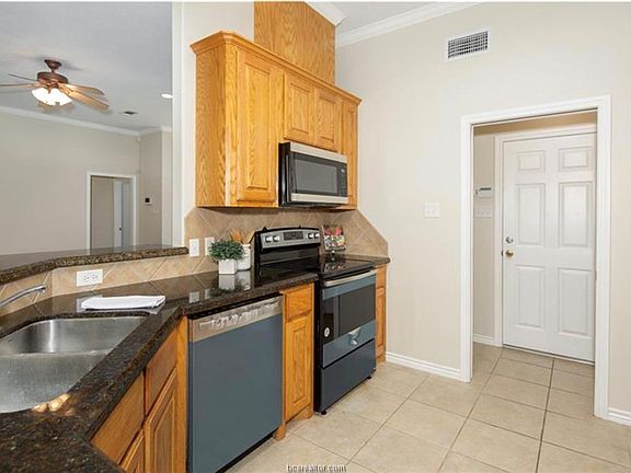 Nestled in the desirable Castlegate subdivision, this well-maintained 3-bedroom, 2-bath home is available for a quick move-in! Located on a quiet cul-de-sac, it offers a peaceful setting with minimal traffic. Inside, enjoy an open floor plan with fresh updates, carpet, and modern appliances. The spacious kitchen features granite countertops, stainless steel appliances, and a breakfast bar, perfect for entertaining. Relax in the cozy living area with a fireplace or enjoy the outside with your covered patio and private backyard. Additional features include a 2-car garage, sprinkler system, and privacy fence. Zoned to College Station High School and near shopping, dining, and parks. Don’t miss this opportunity—schedule your showing today!