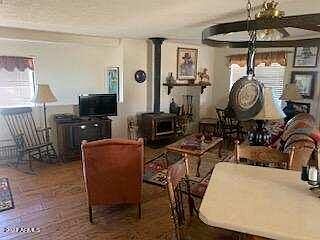 Here is your opportunity to Live like a Dutton on this 640-acre ranch that currently grazes cattle and is situated just seven miles outside the historic town of Willcox. This entire section of fenced range land is unique in its versatility. It includes 120 acres with an as is pivot for irrigation. Irrigation well is cased to 500 feet and produces 800 GPM with a 20,000-gallon holding tank. There is also a domestic well producing 30 GPM, which services the residence, outbuildings and RV hookups. The primary is a 4 bed, 2 1/2 bath, 2573 sf custom home. There is an 1800 sf workshop/garage/tack room with 2 bed 1795 sf guest quarters above. You will also find a 3600-sf airplane hangar with w/45-foot automatic door and a 3000 ft private runway. You will find the ranch's primary purpose