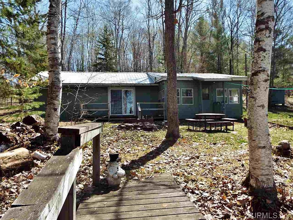 Spacious Thunder Lake cabin with 2 bedrooms and a bonus room that could easily be another bedroom or office. Offering over 1000 sq. ft, enclosed porch/mud room, large living area with tongue and groove pine, and 100' M/L of lake frontage. Thunder lake is in the Hiawatha National Forest and is a 340 acre all sports lake. Sandy bottom and clear water with great fishing and summer activities. Within minutes from trail system and over 60 inland lakes. S. Ramsdam is privately plowed and Ramsdam Rd. is county maintained and plowed. Seller will look at all reasonable offers!