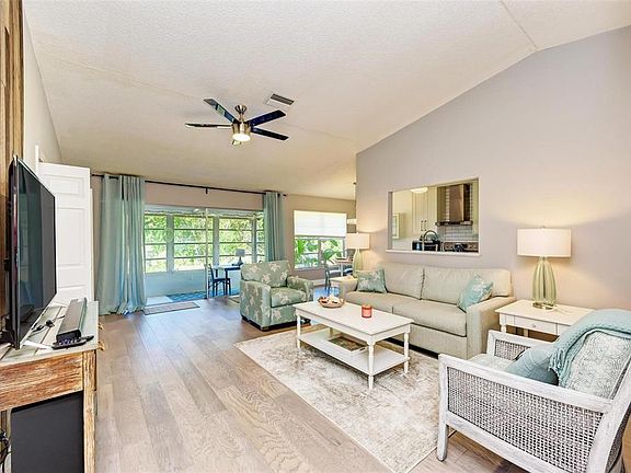 You don't want to miss this one! Back on the market! Largest model and an end unit. This condo is immaculate and hardly lived in since completely renovated in 2019! A/C and hot water heater 2018. Renovated kitchen with quartz counter, soft close cabinets and newer appliances. Newer light fixtures and LED lighting throughout. Vaulted ceilings. NO carpet to be found! The master bedroom and 3rd bedroom/bonus rooms are very spacious. There are no other condos behind this one, there is a well maintained, large yard to look out at while sipping coffee in the screened lanai. New roof, gutters and exterior paint in 2019. No stairs and you can park right in front of your door. Cortez Villas is a desirable 55+ community in an excellent location in West Bradenton - close to shopping, dining and the beautiful beaches. Condo fees include large heated pool, clubhouse with activities, internet, cable, water, trash, grounds maintenance. If that's not enough... this comes turnkey (furnished) with a beach feel. Multiple offers are expected. Please send your highest and best offer by Tuesday at 5pm. Thank you!