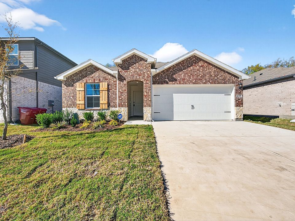 OPEN HOUSE: Sunday 11-16 from 12:00pm-1:00pm BRAND NEW HOME! Single-Story Living at it's best in the Sweetwater Springs Neighborhood. Welcome home to this beautifully designed 4-bedroom, 2.5-bath residence offering an open-concept layout and split-bedroom floor plan that blends comfort with style. Natural light fills the inviting living area, creating a warm and airy atmosphere perfect for gatherings. The chef-inspired kitchen features a large island, stainless steel appliances including refrigerator, electric range, microwave, dishwasher and disposal and ample prep space for cooking and entertaining. The primary retreat is a true getaway with dual sinks, an oversized shower, and a generous walk-in closet. A separate laundry room includes both washer and dryer for convenience. Smart home features add peace of mind and efficiency: video doorbell, programmable thermostat, keyless door lock, smart light switch, and touchscreen control hub. Step outside to a large backyard with covered patio, ideal for family barbecues, relaxation, or playtime. Perfect for a growing family or anyone ready to downsize without compromise. Coordinates for maps is 33.680171,-96.570501