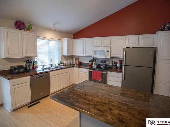 Lovely multi-level in Quail Run. Living room w/window overlooking front yard has a corner fireplace & vaulted ceiling. Kitchen w/white cabinets, bamboo flooring & new counter tops has large eat-in area. Kitchen appliances included. Master bed has a walk-in closet & 3/4 bath w/ 2 sinks. Finished family room & subbasement for extra storage & laundry. Backyard great for entertaining w/ two tiered deck & fenced. new roof & expanded driveway. Elkhorn Schools. Great location near shopping & much more.