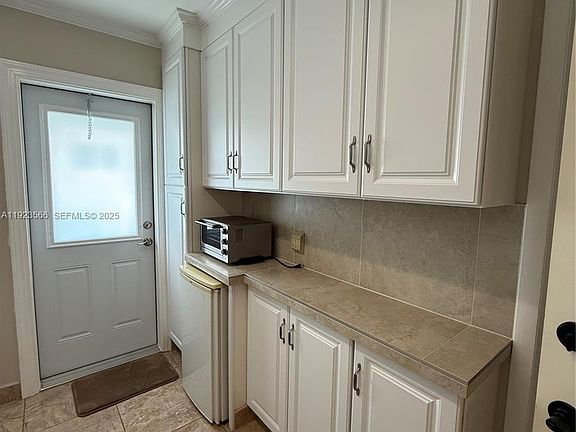 BEAUTIFUL TURN-KEY FURNISHED 2 beds/1 bath single-family home located in the 55+ community of Mainlands of Tamarac. This home has a gorgeous renovated kitchen that feels very open and the sink facing the Florida room area. Kitchen leads into a secluded room that has additional custom cabinetry, mini fridge, sink, dishwasher, washing machines and can then leads into the garage & outdoors. Garage can fit one car and has the central vacuum and utility workshop. Primary bedroom has a nice walk-in closet and second bedroom is currently used as an office room. All windows & sliding door are hurricane impact, AC changed in 2017, roof from 2021, and owner has a transferrable termite service agreement good until August 2027. Florida room has good vibes and nice ceiling to make it cozy. Full patio set and BBQ. Outside is equipped with water hose and retractable clothesline.