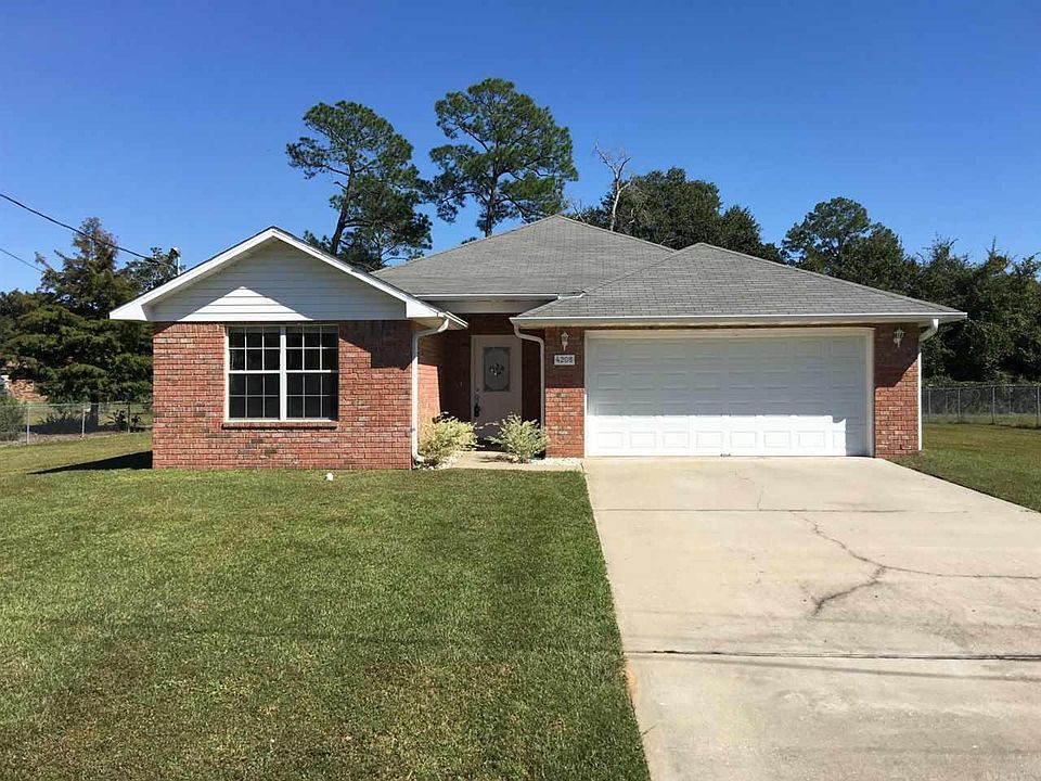 Brick 3/2 in Pace with 2-car garage. Open & split floor plan with plant ledge, cathedral ceilings, ceiling fans, etc. Fully equipped kitchen with built-in microwave and side-by-side refrigerator. Applicants must qualify. Selection criteria listed on front page of application. Mature pet under 25-lbs considered. $250 pet fee and $20/mo. pet rent for semiannual pet inspections.* See the virtual tour on company website. Register with Rently today and schedule your self-guided tour.