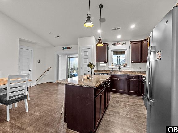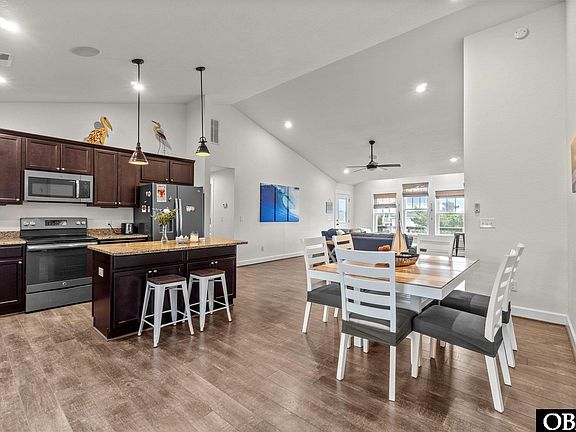 Check out this beautifully maintained upscale beach home just a short stroll to the pristine beaches of Avon located on a peaceful street. Discover plush comfort and style at 'Salt Therapy,' where spacious interiors and modern amenities await your coastal getaway. Fully equipped kitchen featuring stainless steel appliances and granite countertops. Whether you're fishing, sunbathing, surfing, or simply enjoying the ocean breeze, your desired activity is minutes away. This retreat boasts a fully enclosed backyard for your kids & pets to play. Expansive decking offers captivating views of the mesmerizing hues of the sun as it gracefully sets over the sound side of the island and a canvas of colors, creating a serene and unforgettable experience. Immerse yourself in the inviting hot tub located on the lower level deck for a relaxing end to the fun filled day.