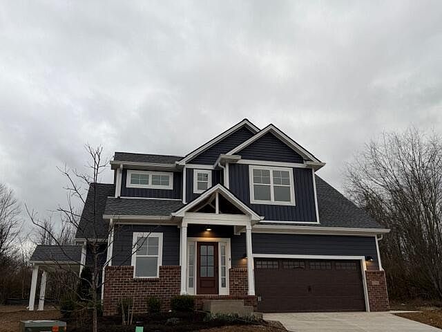 Welcome to The Gloria II by Artique Custom Homes—a stunning modern story-and-a-half that perfectly blends luxury, comfort, and smart design. Located on a semi-cul-de-sac at one of the highest points in the neighborhood, this home offers scenic views of permanent green space and parkland. Step into a vaulted living room filled with natural light, built-in cabinetry, and a cozy fireplace—perfect for relaxing or entertaining. The kitchen is a chef's dream with an oversized island, pro-series appliances, and a generous sized pantry. A tucked-away pocket office provides a quiet space to work or study. Enjoy peaceful mornings or sunsets on the covered porch overlooking wooded surroundings. The first-floor primary suite features a trayed ceiling, spa-style wet room, and a spacious walk-in closet. Upstairs, you'll find a large loft and three generously sized bedrooms. The Gloria II is designed for modern living with timeless elegance. ARTIQUE HOMES are HERS rated for quiet comfort and efficiency. Other great home sites are available to custom build your dream!