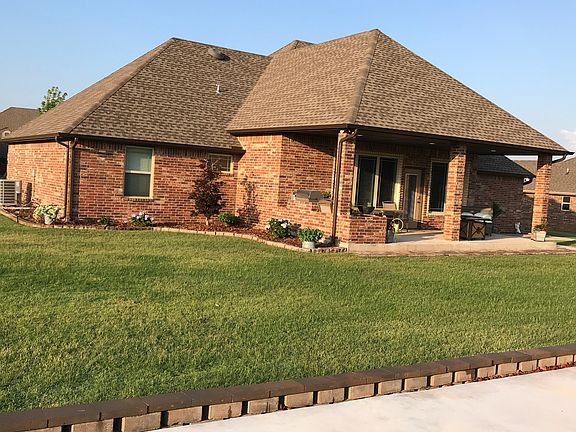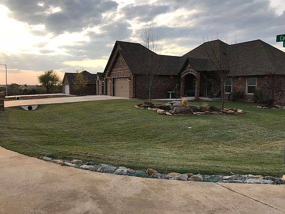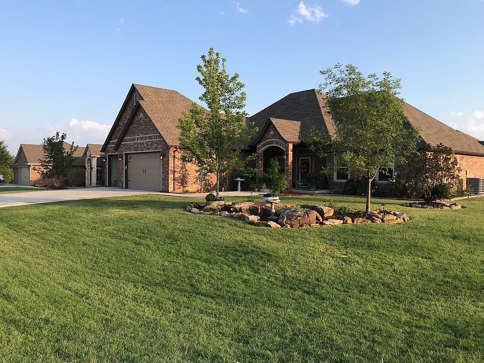 This beauty has it all. 30x40 insulated red iron shop with 6" concrete w/separate concrete drive has 1 10' overhead door & 1 walk thru door, has shelving & finished walls. Sprinklers cover both front & back yards.New storm shelter has been installed in the side door.The 3 car garage is oversized and will fit your extended cab truck.The living room has a tray ceiling & gas burning FP.TV mount will stay.The spacious kitchen will delight the cook w/an island, loads of counter space, pantry, beautiful Alder wood cabinets & upgraded appliances.The office is in the front of the house w/lots of natural light & tile floor.The 3rd bedroom has a walk-in closet and the hall bath has double sinks.Enjoy your spacious Master Suite w/ensuite with jetta tub, double vanities & walk-in shower & closet has built-ins.This home checks all the boxes on the his & hers list PLUS is an easy commute close to major highways to Bricktown, Oklahoma City, TAFB, FAA, Will Rogers Airport, OU, Norman, Mustang, & Moore
