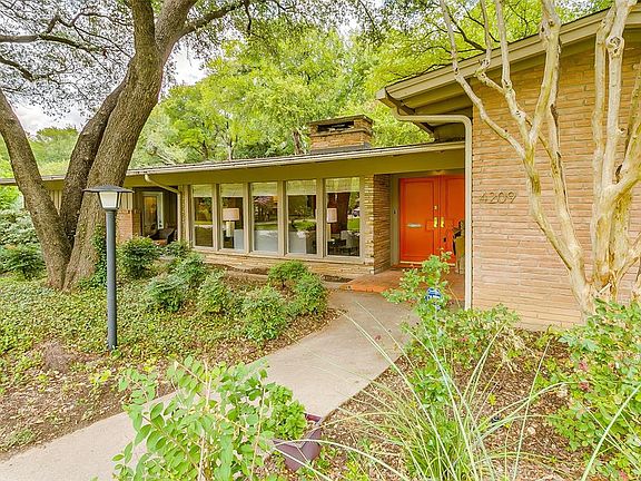 Mid-Century Modern gem in the classic Overton Park neighborhood of Fort Worth. Walls of windows wrap around the home bringing the surrounding beauty in. A clean, modern aesthetic is punctuated by fabulous stacked stone walls. The home features tile & wood flooring throughout and offers tons of storage space. The sleek kitchen offers a gas range and beautiful views. The home features 3 bedrooms, 2 baths and 3 large living areas. The garage was converted into a wonderful game or craft room complete with a walk-in closet, built-in cabinets & sink. Towering trees grace this oversized lot creating a very private backyard space with a huge patio for enjoying cool fall nights. Zoned to the new Overton Park Elementary!