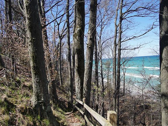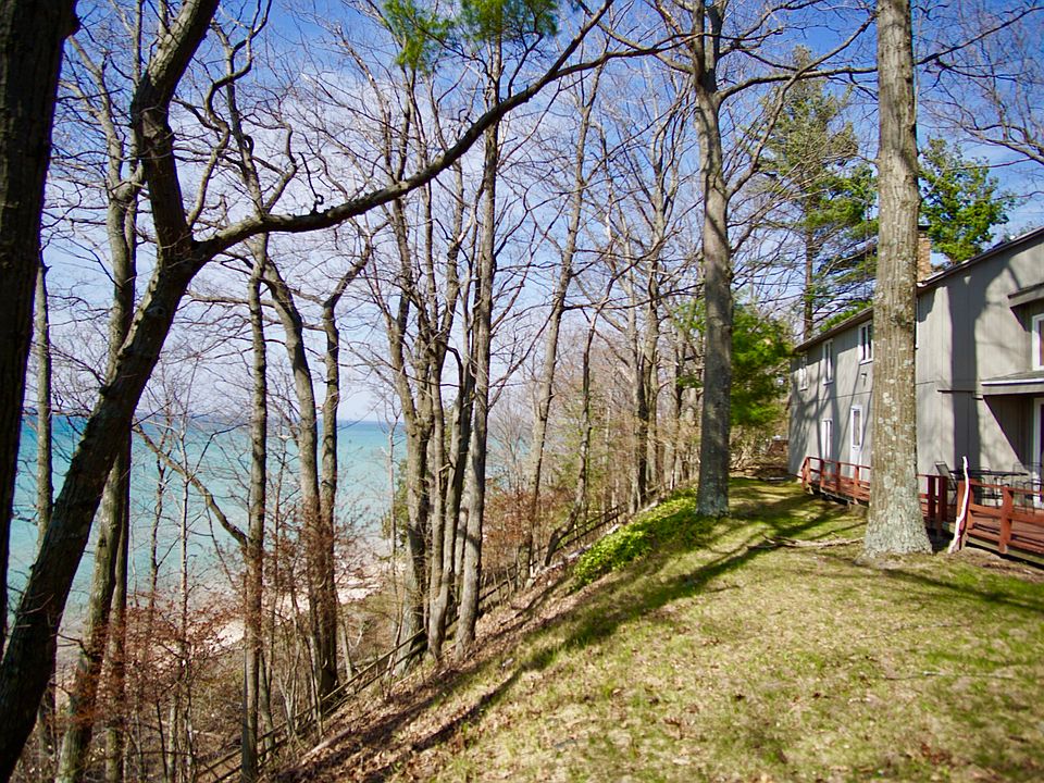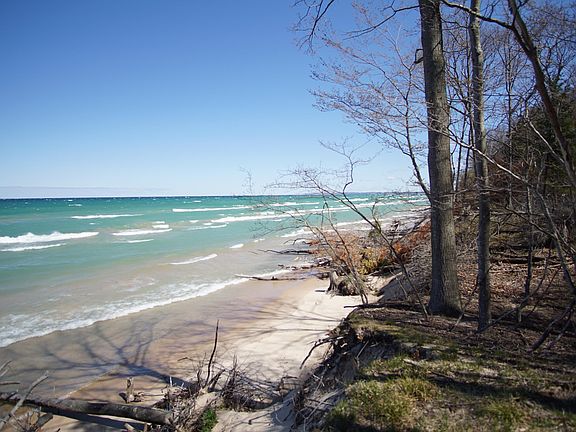 Enjoy the gorgeous sunsets from this year round home/cottage with 130ft of frontage on Lake Michigan. The setting cannot be beat. Beautiful wooded lot with graded walkway to the beach. No issues with water level either. Home is quite large and has been used as an airbnb in the past. Great spaces but dated. Great views from most rooms. Large covered porch and huge great room for inclement weather outings too. Priced to sell and being sold as is. Shared driveway through wonderful forest to home well off the road. Additional lot and waterfront acreage available next door as well. MLS #'s 21014309, 21014312. Listing agent related to seller.