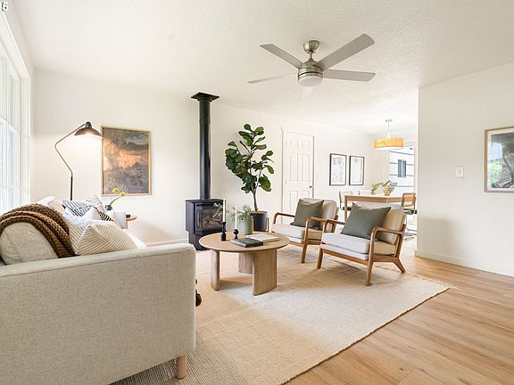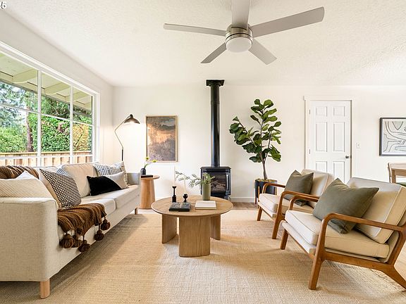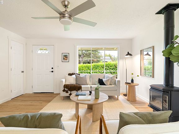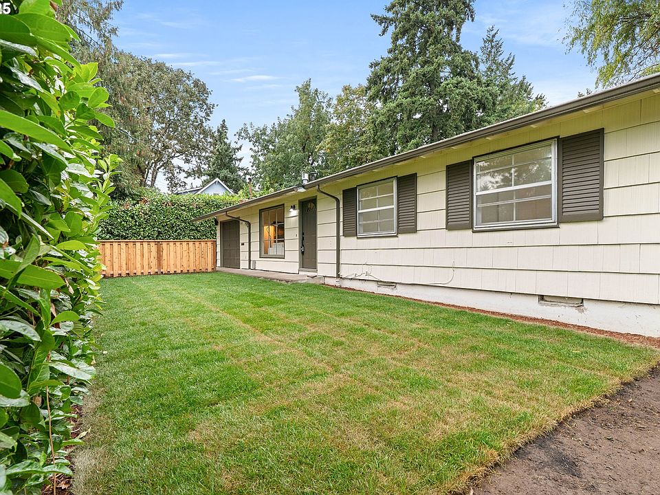 Sweet 1967 ranch on HUGE lot! Located on a quiet gravel road in the Cully neighborhood, this single level home has three bedrooms and a full bath, newly remodeled kitchen opening to dining area and slider to outdoor patio and massive yard! Bright and beautiful living room with gas fireplace, big windows, new flooring, light fixtures, paint and plenty of storage space! Oversized attached garage for parking, additional storage, plus bonus room in back which opens to yard is a blank slate for office, home gym, or workshop. Private front yard with new fence, hedges, lawn, and a MASSIVE backyard with two storage buildings - repurpose or build ADU, or create your own urban oasis on this rare 75x100 lot! Gas furnace, AC, new roof, interior and exterior paint, new kitchen cabinets, counters, tile, flooring. Updated bathroom with custom tile, vanity, flooring. OPEN SUNDAY, October 5 1-3pm!