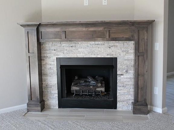 Tiled showerBig soaking tubCozy fireplaceStainless steel applianceBeautiful custom wood cabinetsCovered back patio