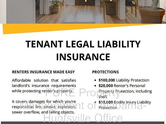 For reduced move-in costs, ask about our Security Deposit Waiver Program. We offer two options for security deposits. The first option is a traditional security deposit, which requires a lump sum payment at move-in that is held on account for the duration of your tenancy. This deposit may be used to cover any unpaid charges, including rent, utilities, damages, or cleaning costs at move-out. If no balance remains on your account, the full deposit will be refunded. The second option is our Security Deposit Waiver Program, which allows you to pay a monthly non-refundable fee instead of a traditional deposit. No funds will be held for potential account balances, and you will still be responsible for any charges assessed at move-out. To apply, visit PURE Huntsville Rentals.