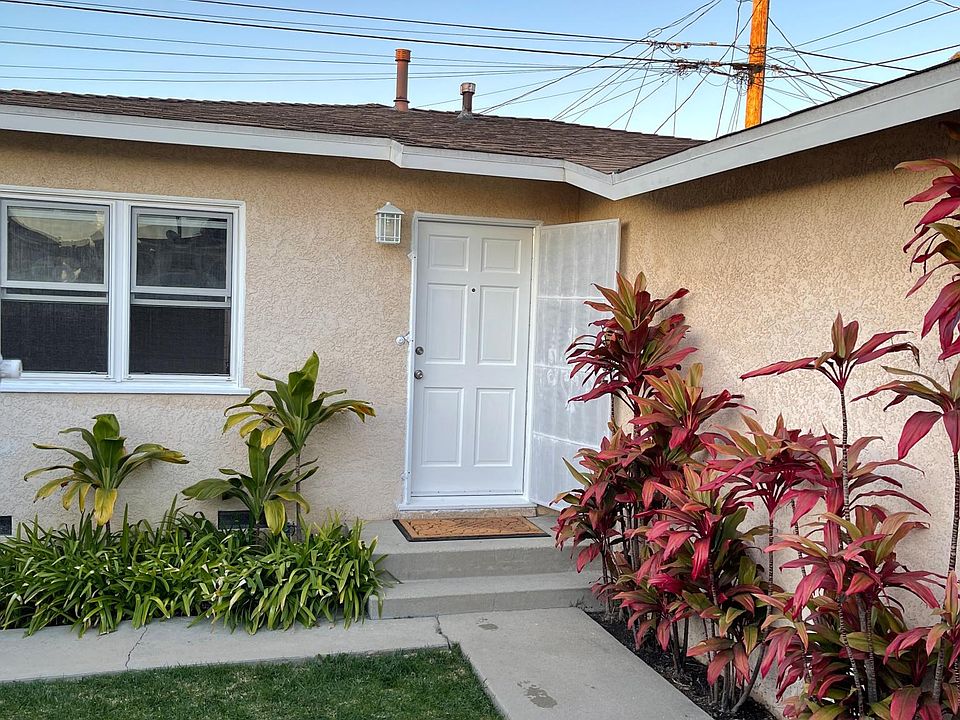 Really nice house fully renovated with many upgrades. It is on the lot with another house, but this house is separate it does not share any walls with the front house. This house is the back house, its front yard is a private fenced yard creating a separation of space from the front house. It has central air and heat, Washer-Dryer, and Wood floors in the living room and hallway. New carpet and pad in both bedrooms. Bedrooms hallway and living room have been repainted. Double paned windows throughout the house., Plumbing and electrical is completely updated. It has a one car garage with area for storage, as well there could be room for a second car outside the garage depending on the size of the car. Near many good things: quarter mile to the Alondra County golf course. In a desirable location West of the 405 between the freeway and the ocean. Only 2 miles to the ocean. 1.1 miles to the South Bay mall. Rent Special remainder of October 2022 is Free Must see to appreciate, shown by appointment only. * One year lease, requires good credit 700+ FICO for all adults, Sorry No Pets, Owner pays for: water, trash, and Gardener. One year lease that turns into month to month.